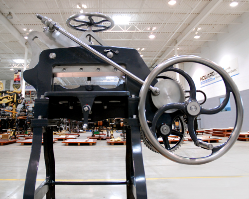 Our machine is a mystery though as it bears no nameplate or serial number. Furthermore, the inscribed name “K.Krause” has not been found anywhere so far. We still search the world to find not only this inscribed name but also an identical nomenclature. A clever cutter design considering many hand operated guillotines used a cheaper lever, the Krause is a proud member of our museum.