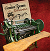 The brothers quickly realized the impact an automated stitcher would have in Leipzig, in the heart of Germany’s printing industry. In 1879, they went back to Germany, taking with them the design and technology and started building the sewing machines under their own name. Brehmer went on to produce every sort of binding and folding machinery while never acknowledging the source of their genius. Our machine was manufactured in the late 19th century.
