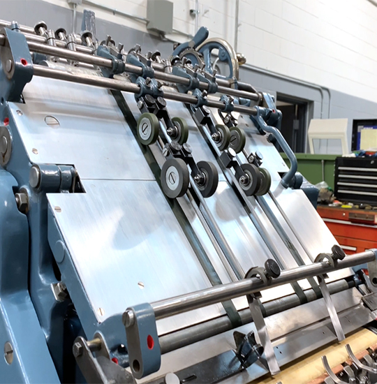 The Frontex Automatic Cylinder Press was made by Automatic Druckmaschinenfabrik Dr. W. Hinniger & Söhne, Berlin, in the 1950s. The modern era, high speed, small format, stop-cylinder machine features a conventional pusher type sidelay. The impression cylinder revolves continuously on the printing stroke, necessitating a manual impression throw-off. Ample time is available for the sheet to 'settle' while the cylinder was stationary on the return stroke. Two delivery grippers turned sheets over and deposited them onto the pile face up.