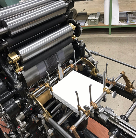 Our Harris E1 was manufactured in 1898, and comes with automatic feeder and delivery. The E1 restoration project took about eight months to complete, in addtition to the extensive research and visit to the Smithsonian Institute archives in Washington, DC. For the HIW Restoration team, it was an honour to have been able to breath life back into this amazing machine - here's a salute to the Harris Brothers.